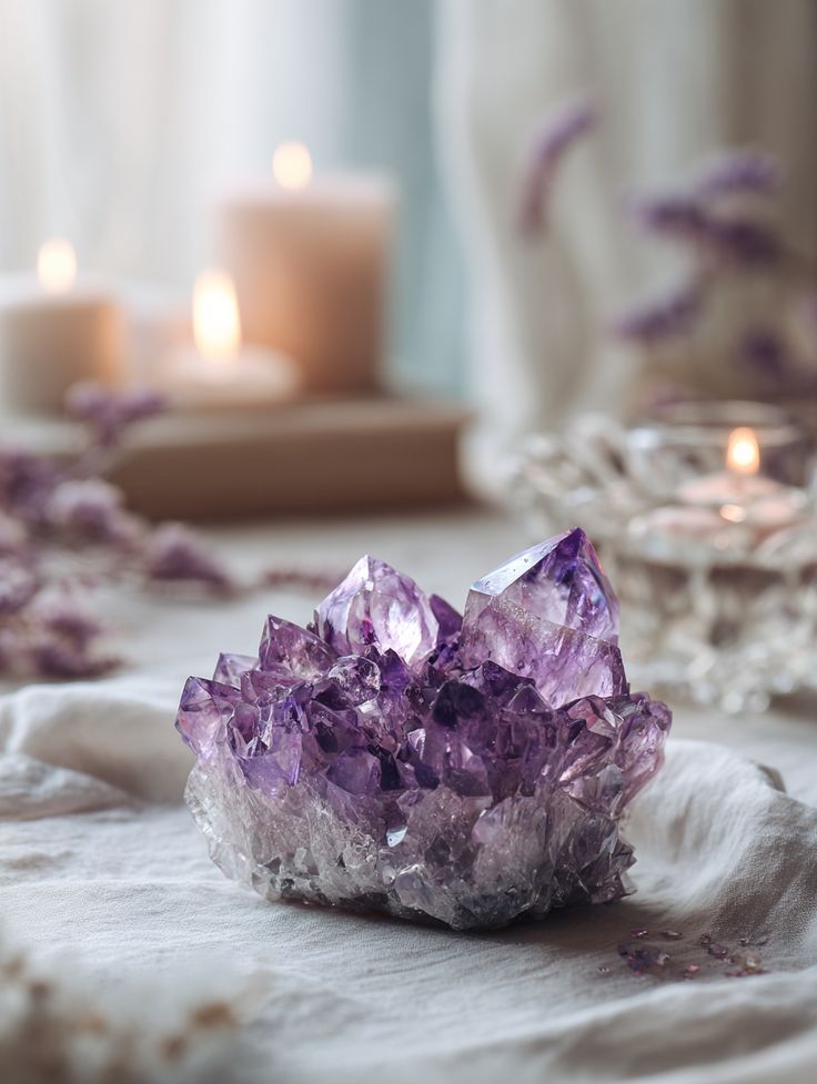 安神與睡眠 💤:紫水晶安神效果顯著,能平定焦躁情緒。將其放在床頭,能幫助放鬆神經,改善失眠困擾。